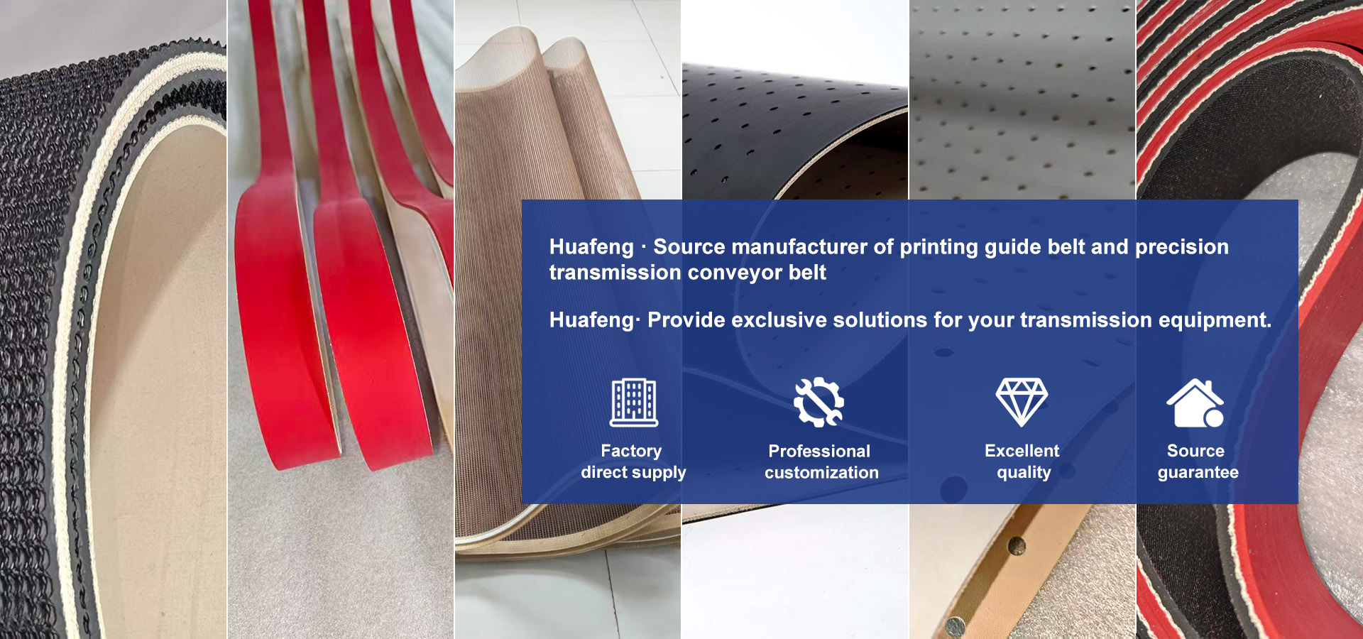 Kunshan Huafeng Conveyor Belt Co., Ltd. was established in 2007 and is located at No. 23 Xiaoshu Road, Qiandeng Town, Kunshan City, Jiangsu Province. It is situated in the core area of the Yangtze River Delta manufacturing industry, adjacent to the Shanghai Nanjing Expressway, with direct access to Shanghai and Suzhou within one hour. Leveraging Kunshan's "Shanghai Suzhou Same City" location advantage, the company has achieved efficient industrial collaboration. Since its establishment, it has focused on the subdivision of transmission belts and has been deeply cultivating the field of transmission belt manufacturing for 20 years. Its development philosophy is "Huafeng Manufacturing Transmission for the Future, Precise and Intelligent Manufacturing, Craftsmanship and Winning" Our business covers multiple series including rubber printing tape, PU printing tape, PTFE PTFE PTFE mesh tape, UV vision printing tape, corrugated machine tape, etc. Among them, seamless rubber printing tape has been continuously developed and improved, with ultra long service life, high temperature resistance, and super corrosion resistance; The PU series guide tape, with its anti-static, easy to clean, and stable transmission characteristics, meets the high-precision operation needs of UV printing and other industries.